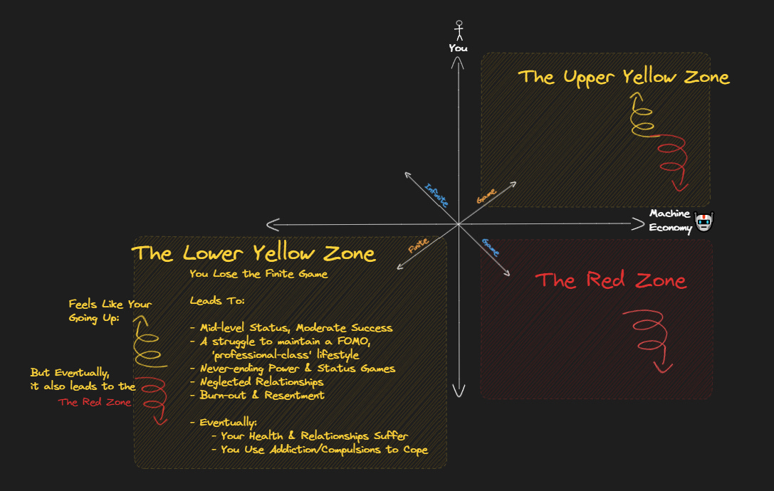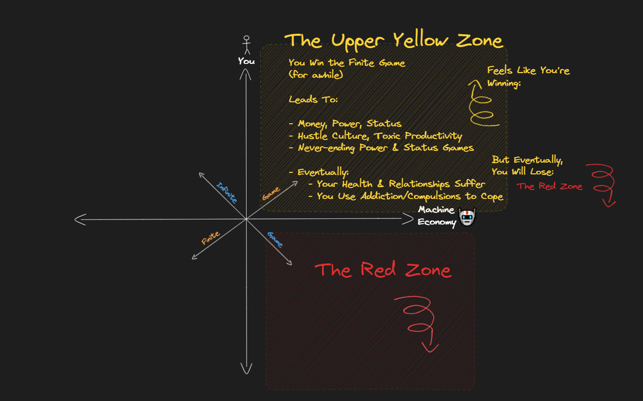 In the Upper Yellow Zone, you play and win the Finite Game.