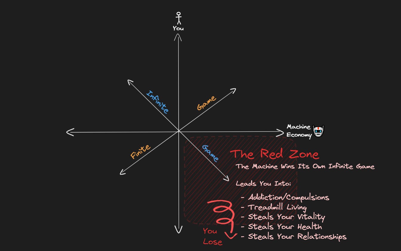 If we play by the values and goals of the Machine Economy, we play by its own mechanized Infinite Game.